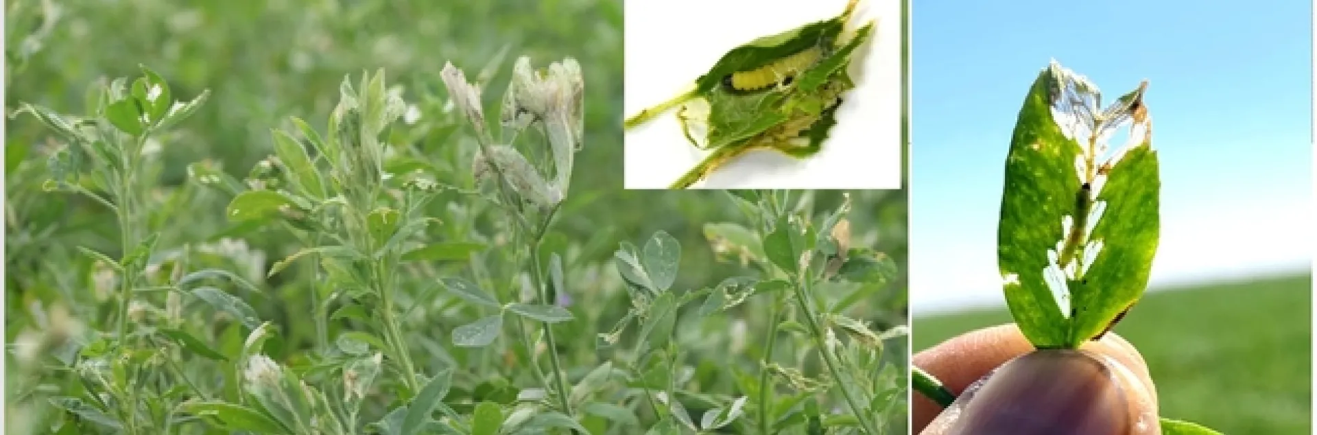 Reports from many fields. There were numerous reports of this new caterpillar pest from multiple alfalfa fields throughout the low desert since mid-September based largely on their distinct feeding symptoms, which result in 2 leaves folded or 2-3 leaves tied together to create a shell-like structure, hence the name ‘Alfalfa Leaftier'. Caterpillars feed on leaf tissues living within these structures (Fig. 1).