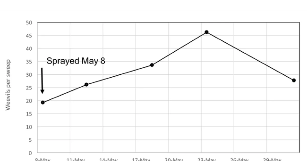 The long crop rotation in the Intermountain area (sometimes 8-10 years or more) along with annual use of pyrethroid insecticides likely led to this resistance developing. It is critical to rotate different insecticide Mode of Actions (MoA) in alfalfa production to minimize chances for developing resistance for all insect pests. Rotating MoA's is typically recommended over mixtures of MoA's because mixtures of MoA's can select for insect resistant to both chemistries. Be sure that you are selecting a different MoA in your crop rather than a different active ingredient (a.i.) of the same MoA. For example, Warrior and Baythroid are different a.i.'s, but the same MoA (group 3A). More information on the different insecticide MoA's for weevil control can be found on the UC IPM alfalfa website for weevil control (UC IPM 2017).