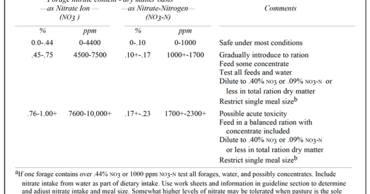 Adams RS, TR McCarty, and LJ Hutchinson. Prevention and control of nitrate toxicity in cattle. https://dairy-cattle.extension.org/prevention-and-control-of-nitrate-toxicity-in-cattle/