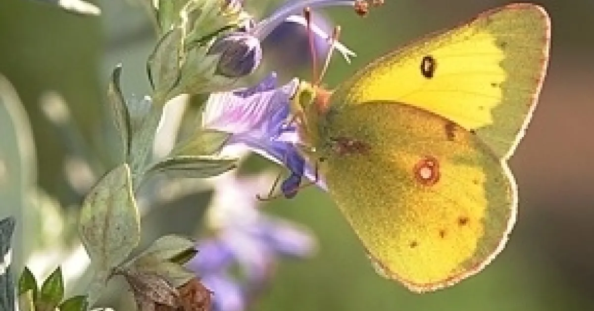 Figure 1. Alfalfa Butterfly (AKA sulfur butterfly) adult feeding on flowers. (photo: Kathy Keatley Garvey)