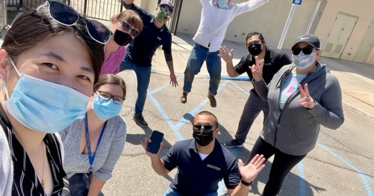 The CalFresh Healthy Living, UC and Farm Smart teams delivered garden kits to preschools. From left, Yu Meng, UCCE Youth Family and Community Advisor; Stacey Amparano, Farm Smart Manager; Stephanie Collins, Farm Smart Outreach Assistant; Chris Gomez Wong, CalFresh Community Education Supervisor II; Vincent (contract gardener), Paul Tabarez, CalFresh Community Education Supervisor II; Rigo Ponce, Community Education Specialist II-CalFresh; and Martha Lopez, CalFresh Community Education Specialist II.