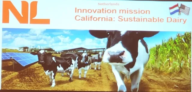 Tuesday was a terrific opportunity to interact with the delegation of technology vendors, Dutch Researchers and dignitaries working in dairy research. The Netherlands and California dairy operators share many current challenges: impact of emissions on air and water quality and the need for quality labor. Secretary Ross kicked off the afternoon with great words of cooperation and a reminder that the first delegation to the Netherlands to work on climate smart agriculture was in 2015.