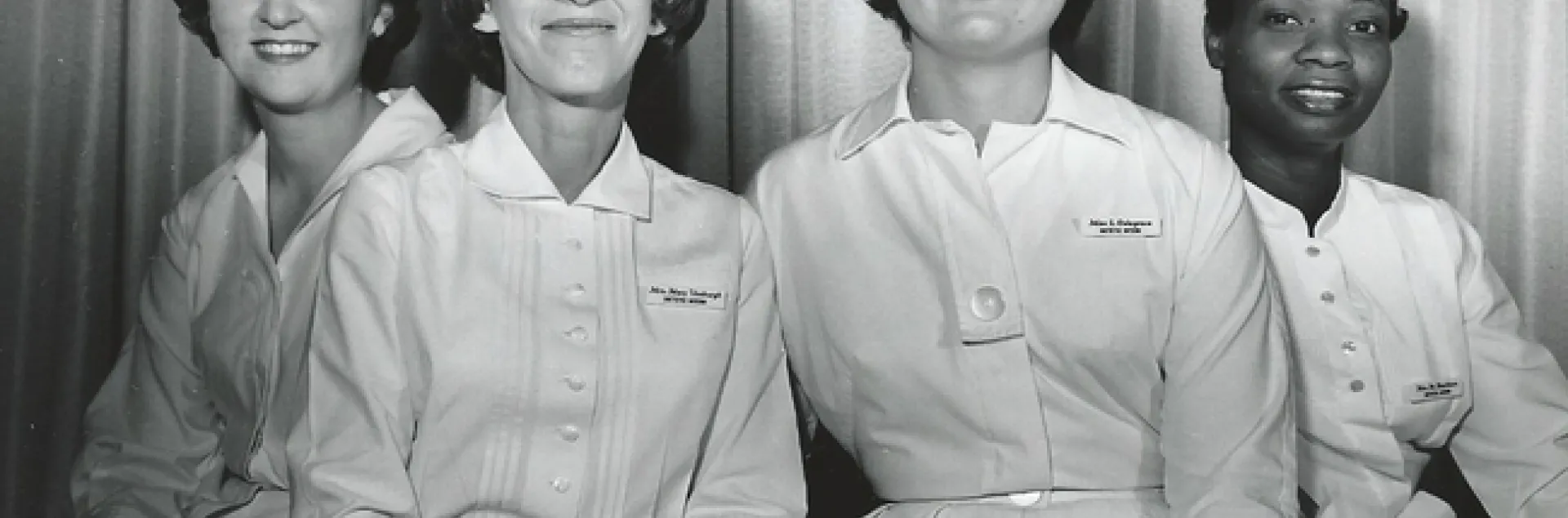 The first class of combined Dietetic Internship-Master's of Public Health program at UC Berkeley. From left, Madonna Hudson, Mary Vosburgh, Sara Colegrove and Mary Blackburn in 1964.