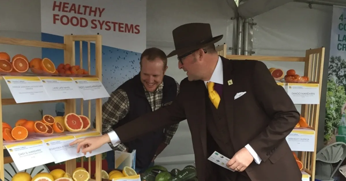 To educate legislators and staffers about some of the benefits Californians receive from research made possible with state funding, they handed out bags of Tango mandarins – the seedless, easy-to-peel citrus variety developed by UC Riverside genetics professor Mikeal Roose and sold as Cuties and Halos – along with the 2017 UC ANR annual report.