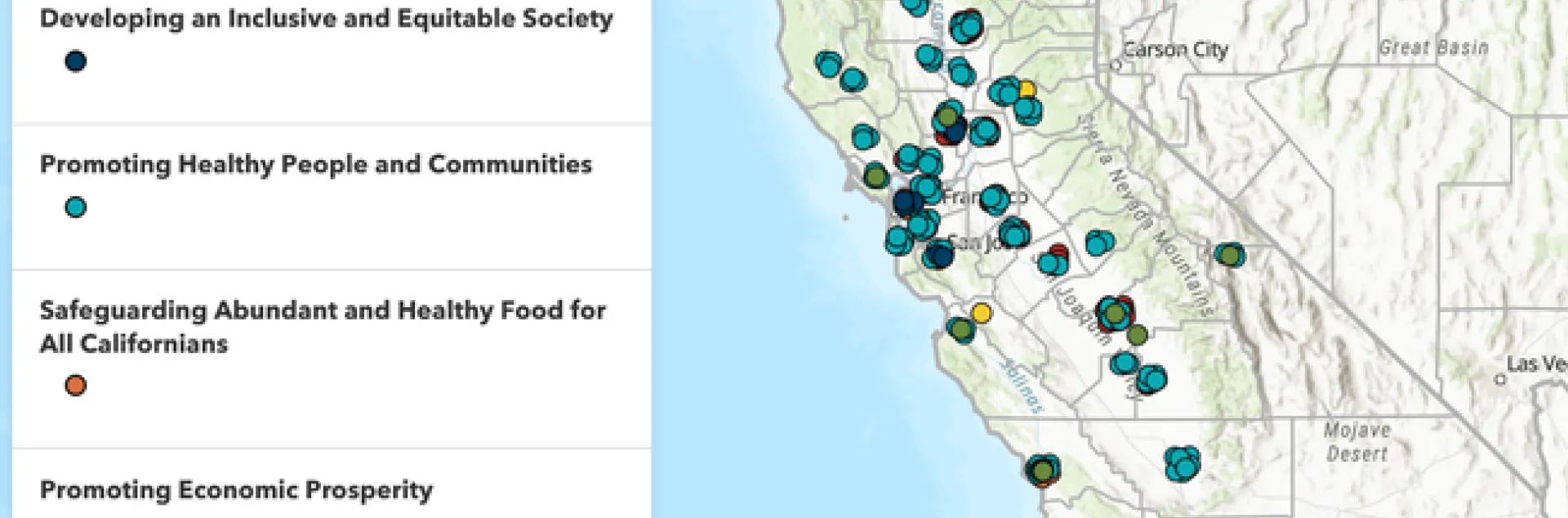 Please note that data on location where the changes in conditions occur are not currently available. For example, if a UCCE advisor serves more than one county, the dot will be in the county where the advisor is based while the project may be in a different county. The Program Planning and Evaluation team may investigate ways to collect location information for potential future iterations of the map to show external audiences where impacts occur.