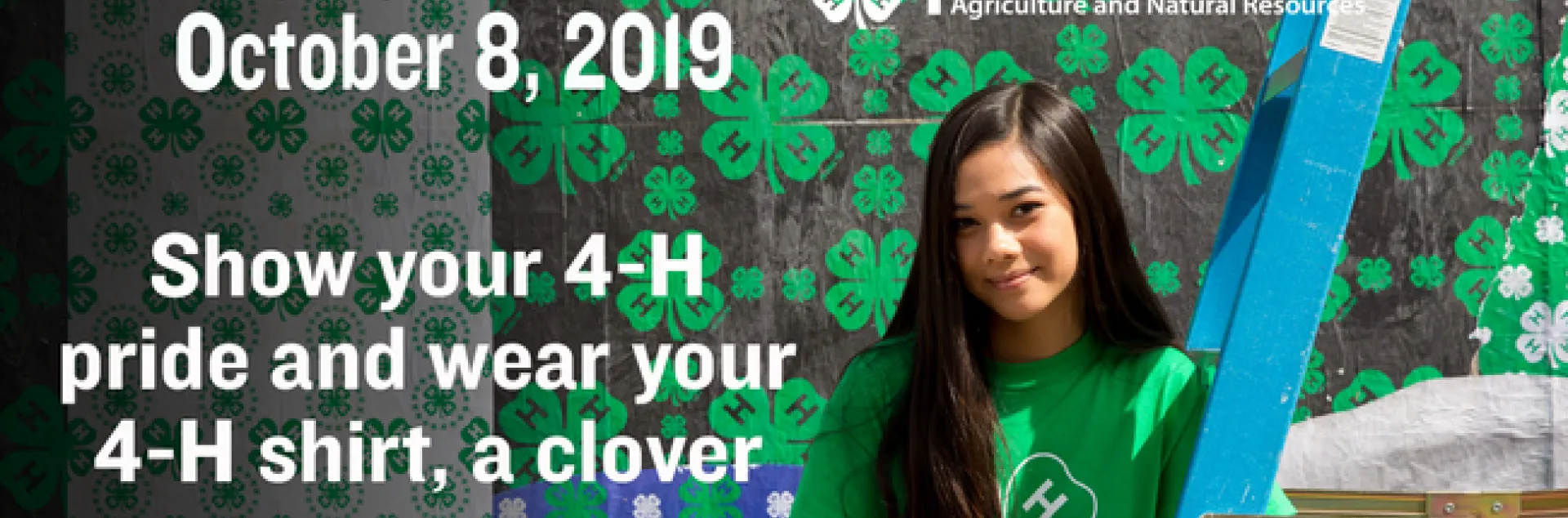 During National 4-H Week 2019, Oct. 8 is 4-H Spirit Day. Nationwide, everyone is encouraged to wear their 4-H shirt, a clover or green to show support for 4-H youth.