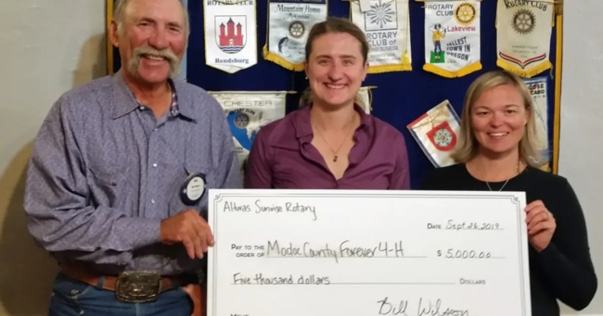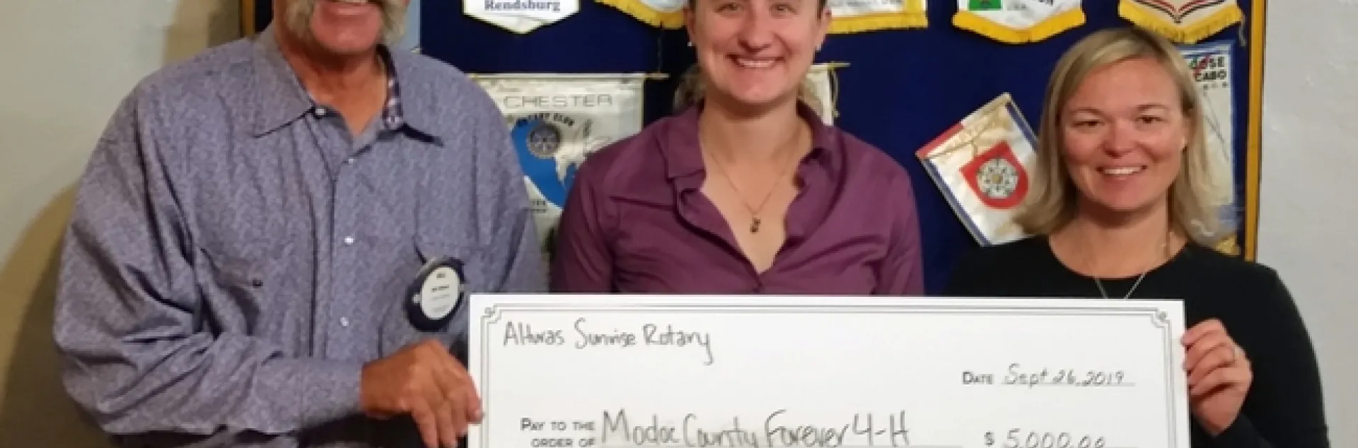 The Alturas Sunrise Rotary donated $5000 towards the Modoc County Forever 4-H Endowment.