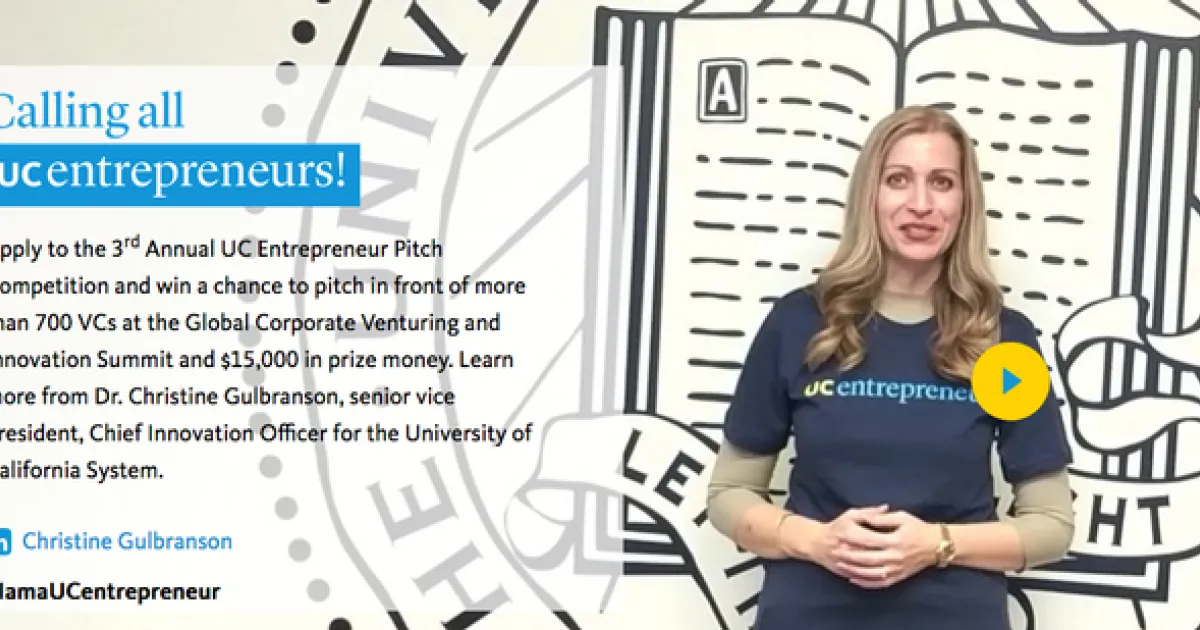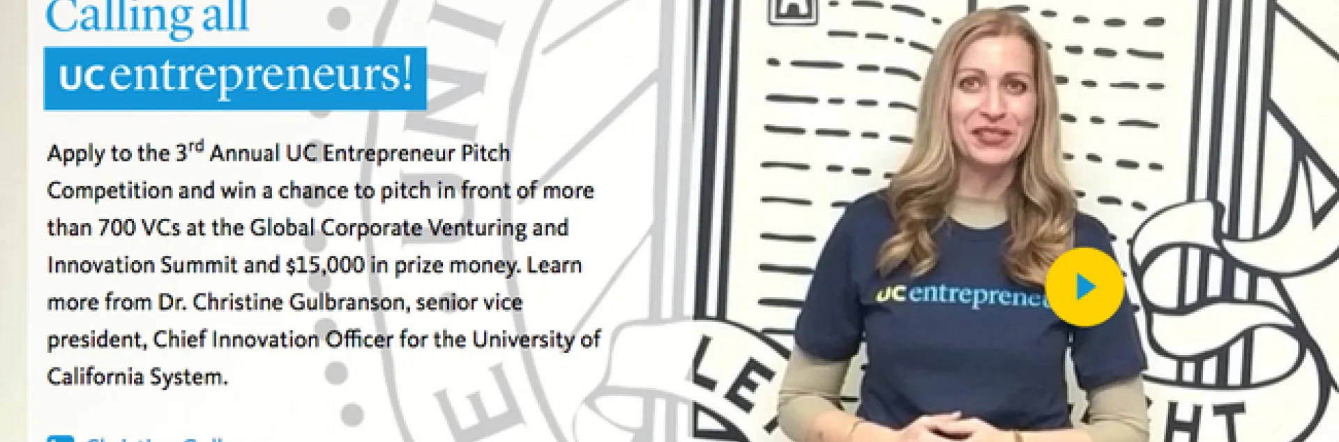 Apply to the 3rd Annual UC Entrepreneur Pitch Competition and win a chance to pitch in front of more than 700 venture capitalists at the Global Corporate Venturing and Innovation Summit and $15,000 in prize money.