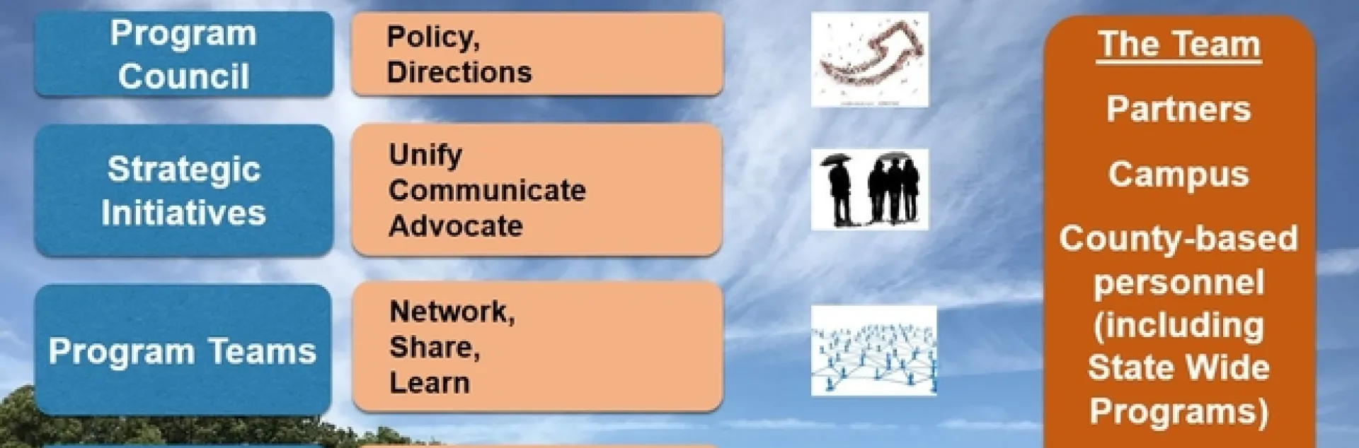 Our UC ANR Jigsaw consists of 50+ workgroups (formal and informal), 18 (active) Program Teams and five Strategic Initiatives (SI), which all have a role to play in helping us connect and communicate.