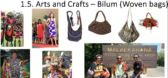 Bilum, the woven bags, are made from paper mulberry that is dyed.