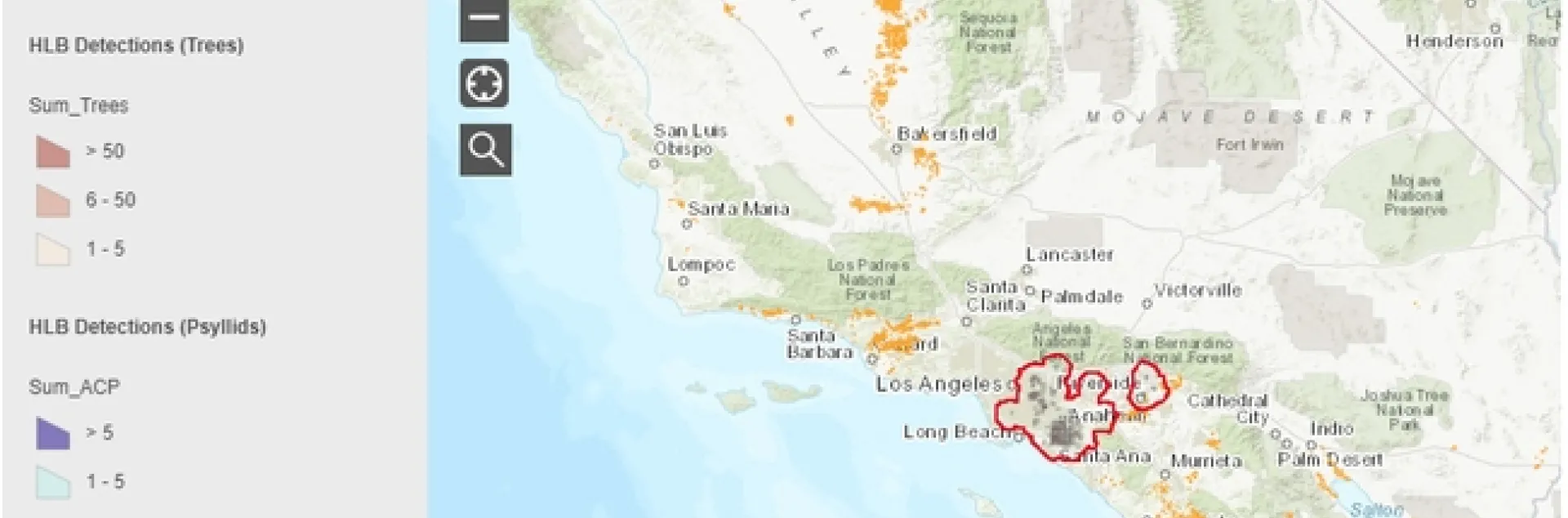 Rivera said an HLB-infected ACP hasn't been found in Riverside commercial citrus before because CDFA is mainly responsible for sampling ACP in backyard trees. "They aren't looking directly or systematically at commercial groves," she said.