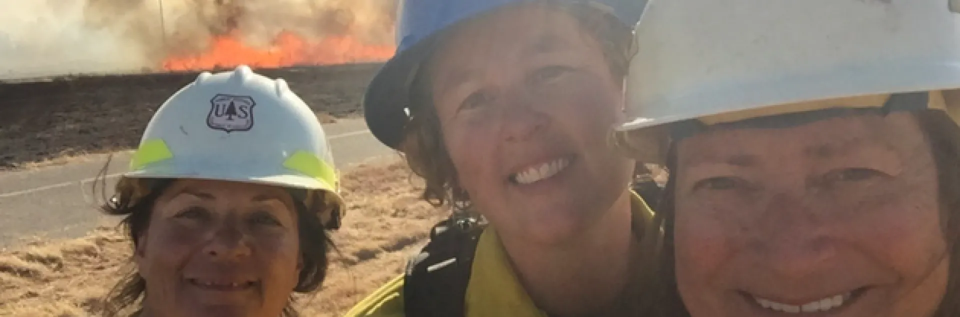 Lenya Quinn-Davidson, center, is the UC Cooperative Extension fire scientist serving Humboldt, Siskiyou, Trinity and Mendocino counties. She is pictured with Jeanne Pincha-Tulley, left, and Kelly Martin, right, at a Women-in-Fire Prescribed Fire Training Exchange session.