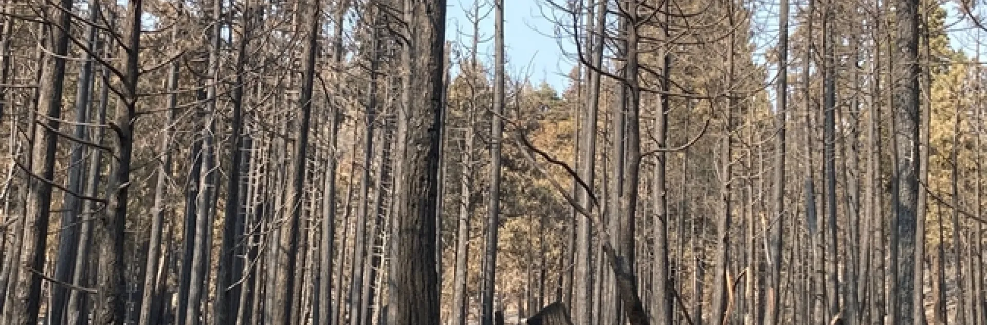 After high-severity fires, the landscape is scorched and shadeless. Without mother trees, it may take a long time, or even be impossible, for conifers to move back in. With open land and sunlight, shrubs sprout amid downed dead pines, which over time accumulate dead twigs and leaves. If there is a spark, the shrubbery and fallen wood can sustain another large fire.