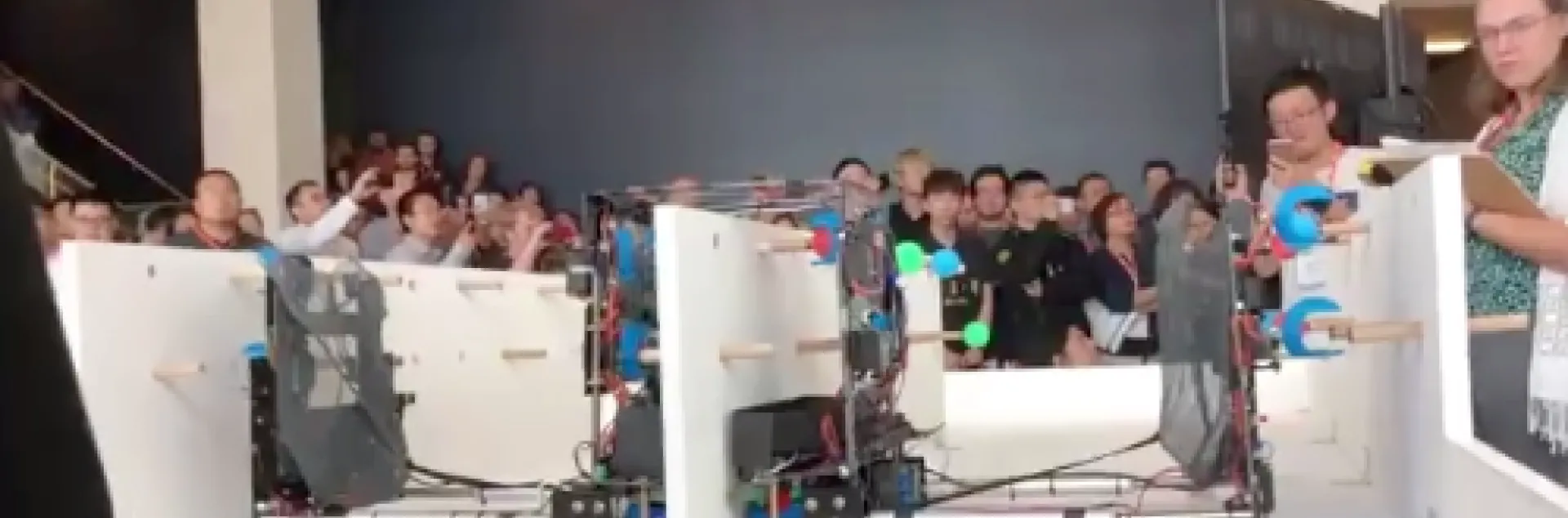 This year's challenge involved identification, sorting, and harvesting of apples. The robots were required to autonomously harvest “apples” on a field measuring 8 feet by 8 feet. The robots identified and selected eight mature apples (red ping-pong balls), removed and disposed of eight diseased or rotten apples (blue ping-pong balls) and left eight immature apples (green ping-pong balls) on the tree.