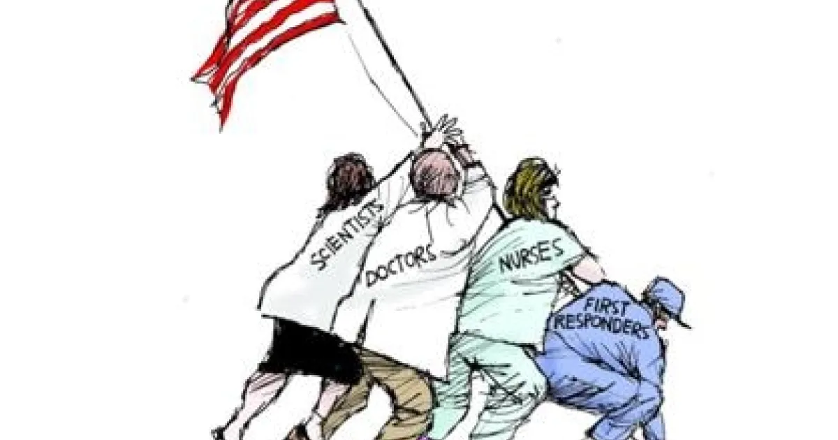 Often we talk about the need for increased science literacy and trust in science by the general public. As a result of the COVID-19 pandemic, the tide may be turning. Take a look at cartoonist Mike Luckovich's recognition of groups making a difference. Scientists are key to the team – woohoo! Let's make the most of this recognition and keep up the good science!