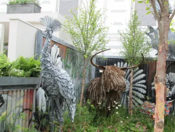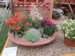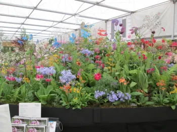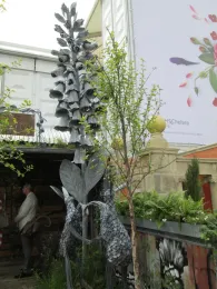 Chelsea Flower Show is England's premier showcase for horticultural endeavors. It features several show gardens designed by top designers, extraordinary displays by many specialist nurseries, trade stands selling a vast array of tools and gadgets, outstanding sculptures, paintings, exquisite embroidery, garden clothing and, of course, plants. There are hundreds of exhibitors.