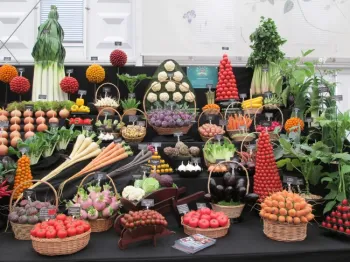 The center of the show is the Great Pavilion and to enter it is a truly jaw dropping experience. There are dozens of displays by nurseries from all over Britain and the rest of the world and every one is absolutely stunning. Some depict the traditional cottage garden with a mix of representative flowers, while others are dedicated to one particular specialty such as gladioli, carnivorous plants, hostas, house plants, vegetables, proteas, cacti or bonsai. Each of the thousands of plants and blooms is a perfect specimen! Stands of spring-flowering daffodils shown at their peak and autumn-flowering chrysanthemums are a testament to the skills that growers have in manipulating flowering times. There were educational displays on such topics as creating children's gardens, and one which detailed the results of genetic research on snapdragons growing wild in the European Alps. And then there are the spectacular floristry displays.
