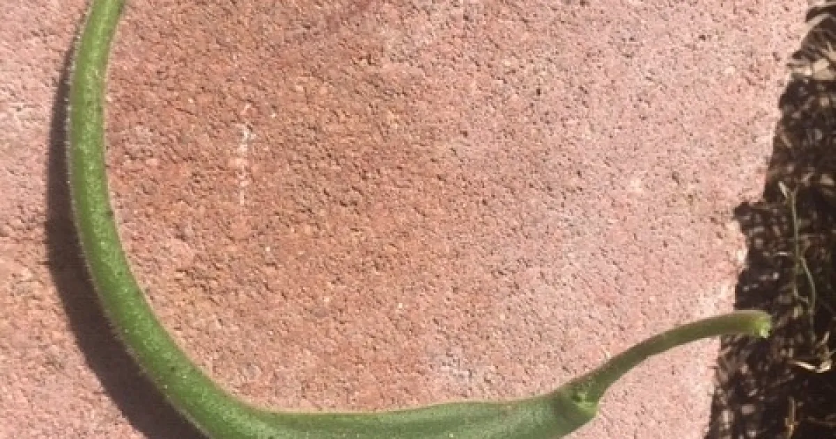 The pods are edible, supposedly related to the flavor of okra so we began to harvest the green pods before they got too large and tough. I was also growing okra in my plot, because my husband is from Texas. We harvested enough devils claw and okra to do a pickling project. Both were made into refrigerator pickles with the same brine on the same day. They resided in the refrigerator for just over 4 weeks to allow for the brine to do what brines do. Then we proceeded to have a tasting. Visually, the devils claw made the brine turn a dark red color while the okra stayed the same with just a hint of green to it from the fruit flesh.