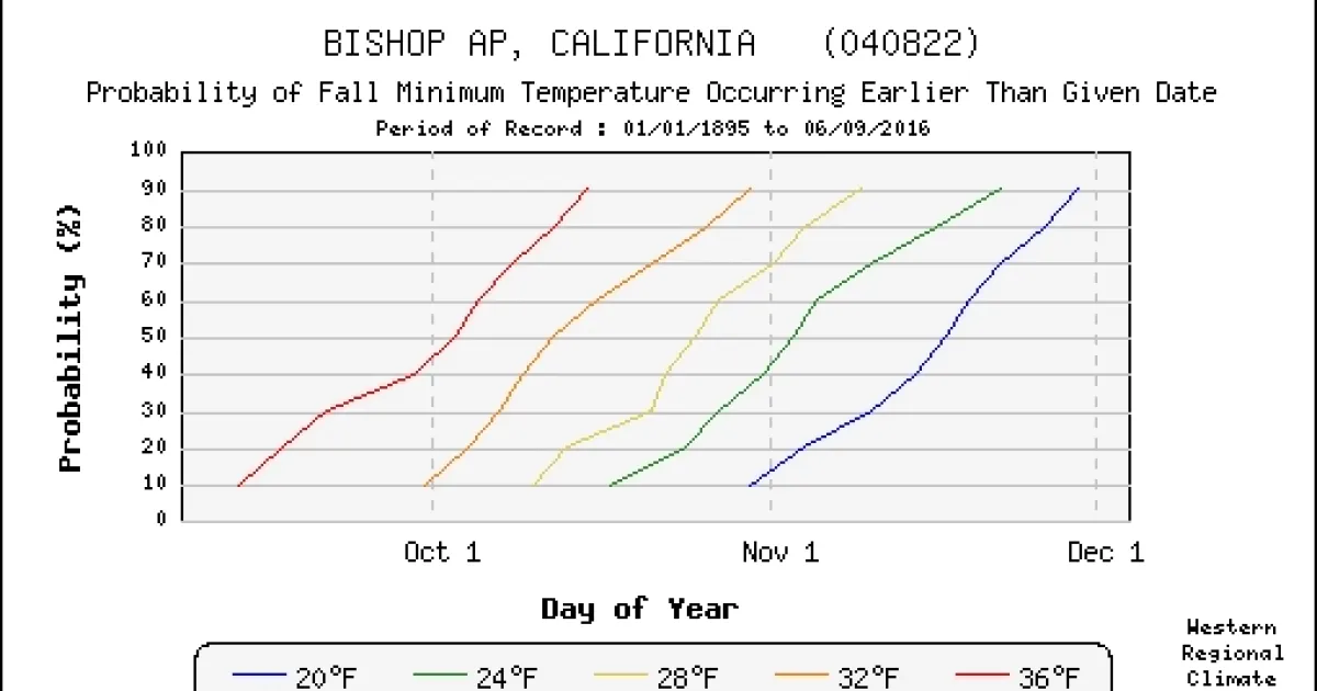 | Bishop (Airport) | 10/13 | 13 | 9/30 | 10/26 |