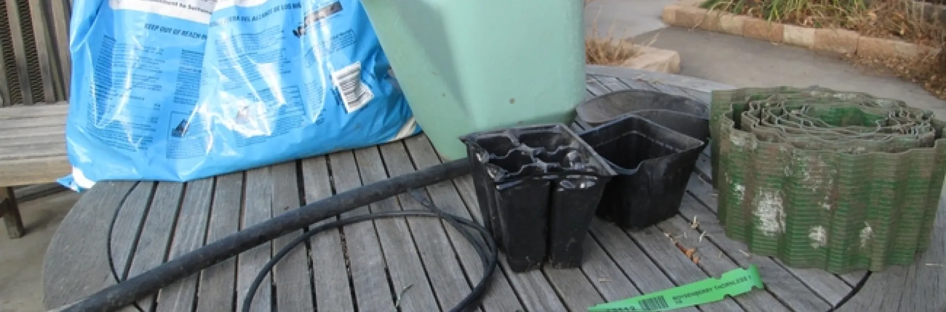 My grandfather's seed trays were made from thin wood, and instead of plastic shade cloth he used wooden lathe, his raised beds were built of concrete blocks and were covered with large, glass Dutch lights in a wooden frame. Hoses were made of rubber, watering cans, pails and spraying devices were galvanized metal, and plant pots including enormous rhubarb forcing pots were terracotta. He had only one arm so his main method of transport was a pony and cart. The rotted stable manure mulched and fed anything that grew. The garden was bordered by a thick hawthorn and blackthorn hedge which provided numerous nesting sites for insect eating birds which acted as the main form of pest control. I think that he could have taught modern horticulturists a thing or two about sustainability.