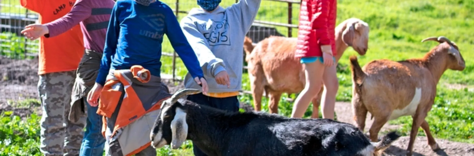 Curious goats milled around the masked elementary school students who were raking out the livestock stalls. After a year of social distancing due to COVID-19 precautions, the goats were enthralled by the youngsters who visited UC Agriculture and Natural Resources' Elkus Ranch Environmental Education Center in San Mateo County.