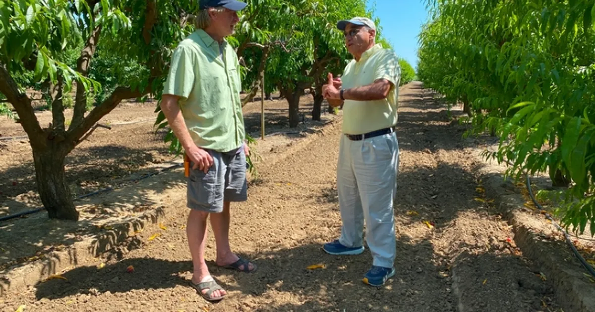 En un huerto experimental a pocos kilómetros al oeste del campus de UC Davis, Thomas Gradziel arrancó una nectarina casi madura de uno de los árboles. Sacó una navaja y cortó jugosos trozos para que Carlos Crisosto los probara. Ambos son expertos en cultivos hortícolas del Departamento de Ciencias Vegetales de la UC Davis, y a los dos les encantan los duraznos.