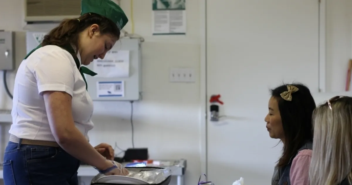 Tal es el caso de Sadie, miembro del programa 4-H del condado de Orange, quien se presentó ante dos jueces con una bolsa térmica aislante en la mano. De ella sacó platos, utensilios y servilletas y las colocó en la mesa. Abrió el cierre del compartimento inferior y sacó cuidadosamente un sartén de hierro forjado en el que se apilaban varios panqueques dorados y esponjosos.