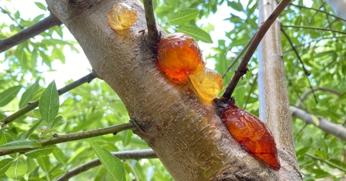 La singular coloración de las bolas de goma - desde dorado y ámbar y purpureo obscuro a rojo brillante (ver fotos) – son clave para diagnosticar una infección de esta particular P. syringae. Pero se les urge a los agricultores a contactar al asesor local de Extensión Cooperativa para su confirmación.