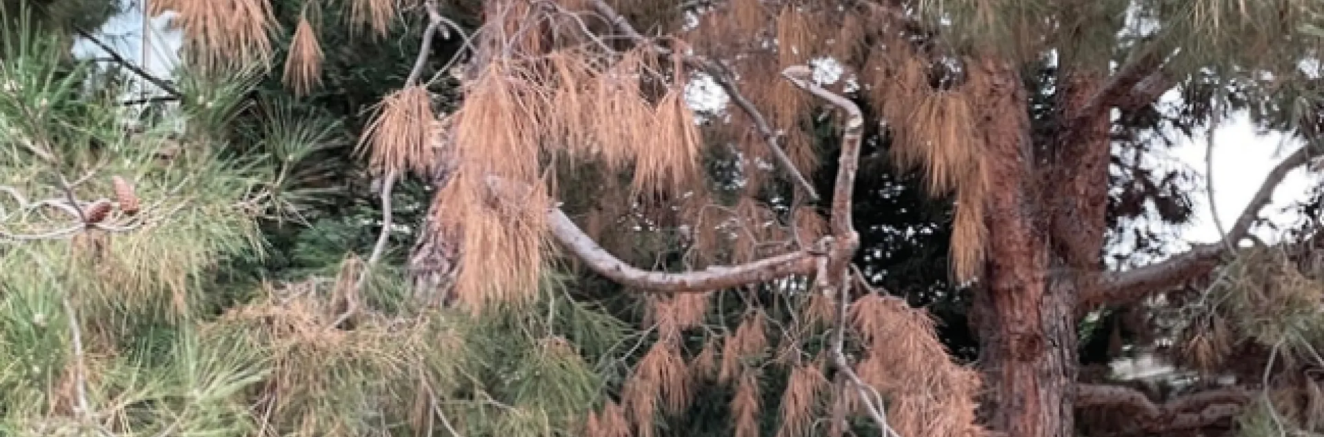El cancro fantasma del pino –causado el hongo patógeno Neofusicoccum mediterraneum y Neofusicoccum parvum – suele infectar la parte inferior de la copa de un árbol, secando las ramas antes de pasar a los troncos. En algunos casos, esa marchitez o podredumbre puede ser mortal.
