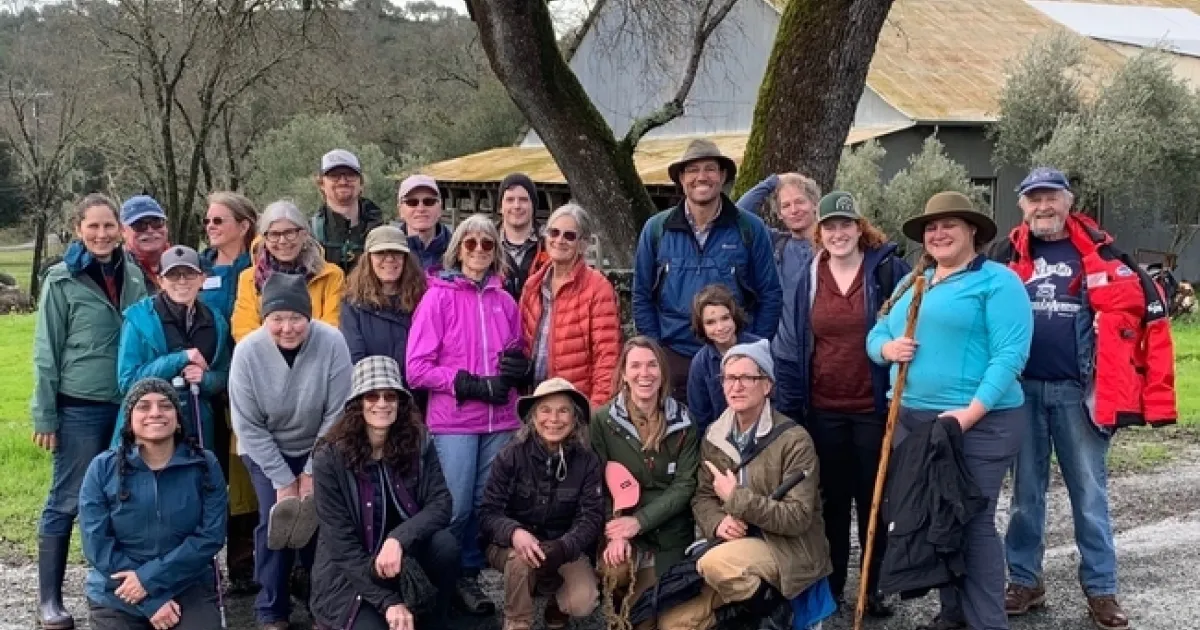 Participantes del Taller de Administración Forestal del condado de Napa posan para la fotografía durante un recorrido en persona. Fotografía por Kim Ingram.