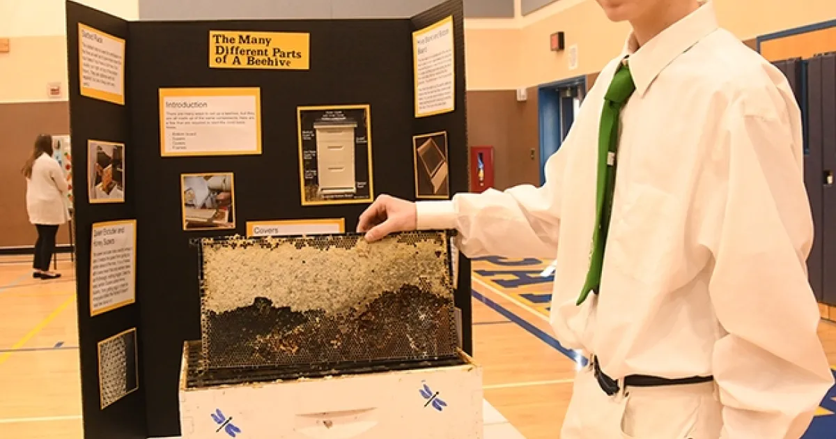 Ian Weber of the Vaca Valley 4-H Club, Vacaville, a second-year beekeeper, discussed "The Many Different Parts of a Bee Hive," explaining his project to evaluators and fielding their questions. For his efforts, Weber won a showmanship award, one of 11 youths to win the top honor. He competed in the senior division, ages 14 to 19.