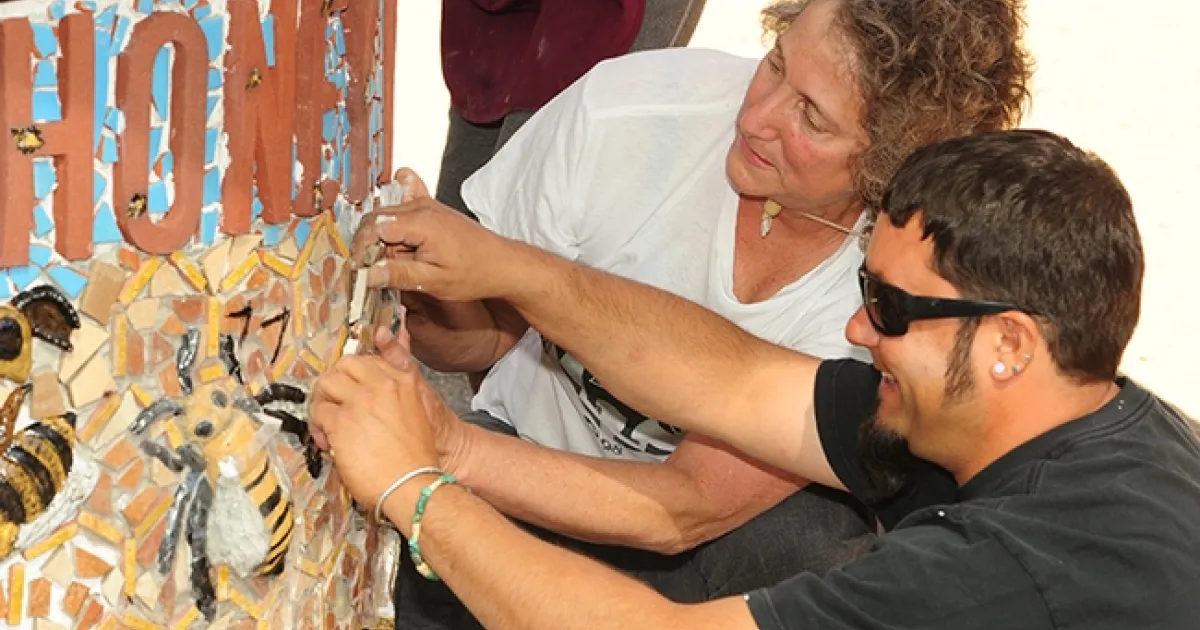 We remember Mark's paint-daubed hands, his gracious humility, and his gentle soul as he worked with Ullman and Billick to install the ceramic mosaic art on the planters at the haven. He and all of us around him were admiring the honey bees: bee motifs on the planters; bees foraging on the flowers in the half-acre garden; and bees hived at the nearby Harry H. Laidlaw Jr. Honey Bee Research Facility.
