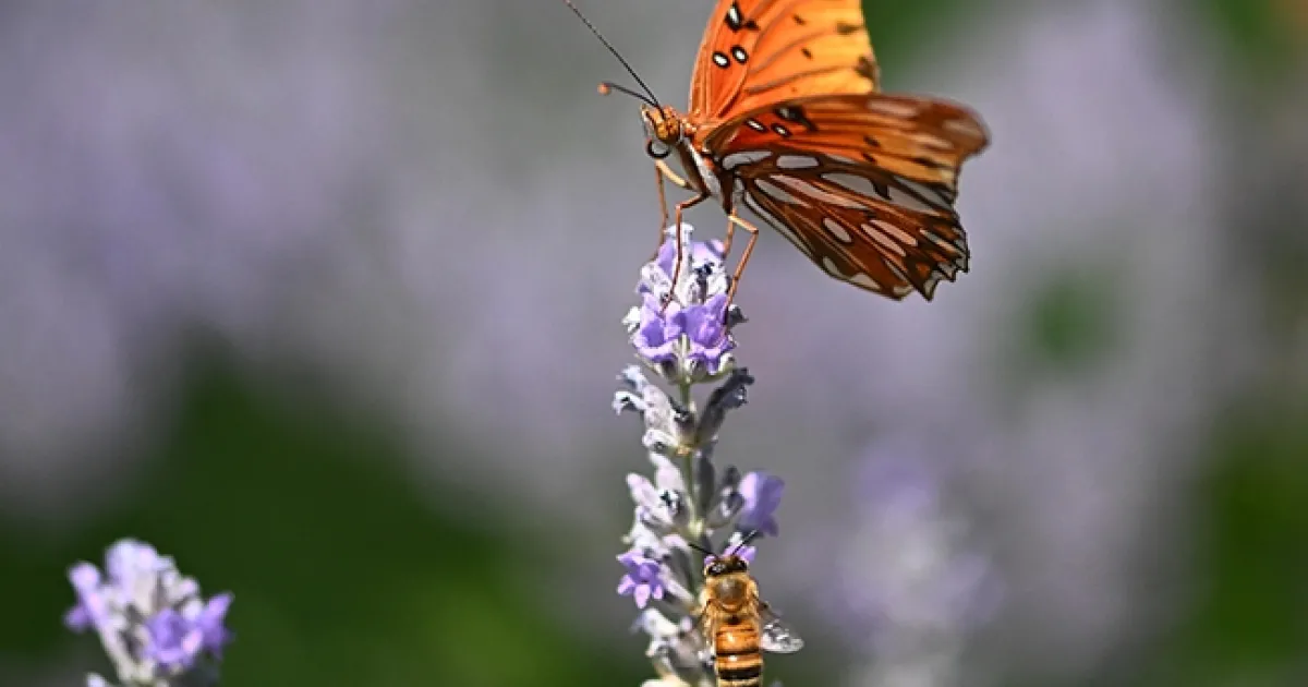 Ever seen a honey bee and a butterfly sharing a lavender blossom?