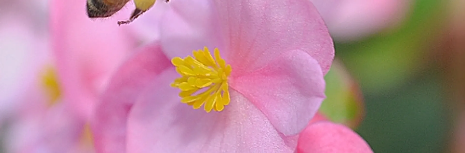 We told Extension apiculturist Eric Mussen, a noted authority on honey bees and bee behavior--and a member of the UC Davis Department of Entomology faculty--of the bee-begonia encounter. "Bet she didn't come back," he said.