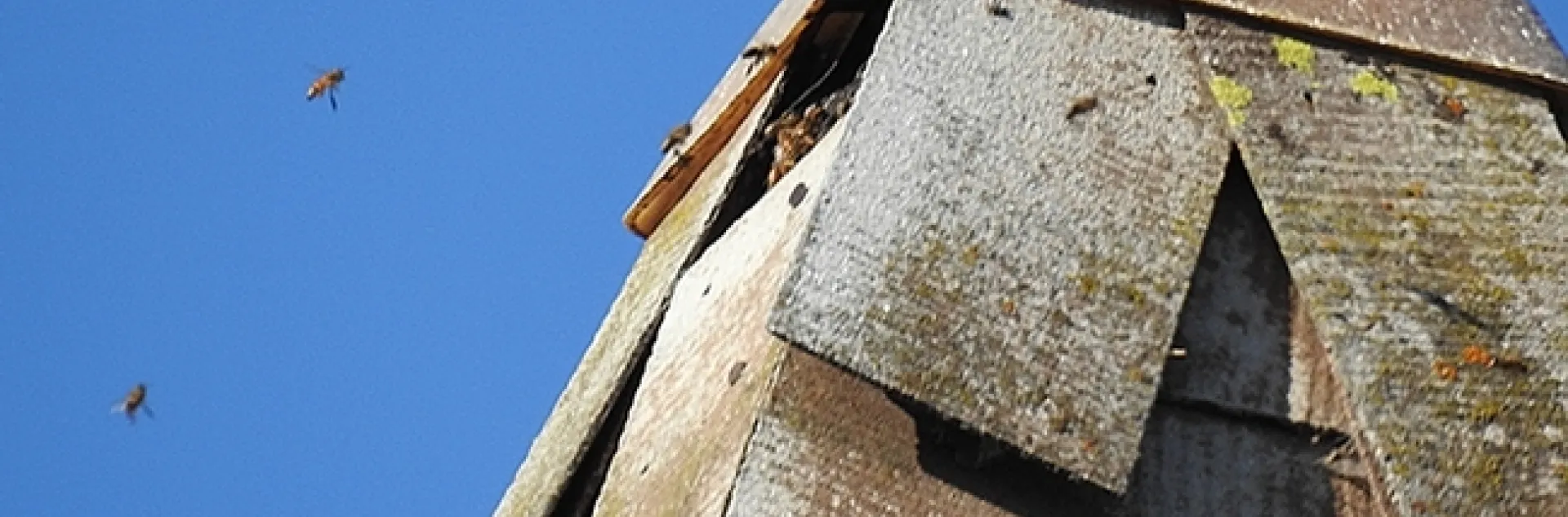 Meanwhile, congregation member Carlyn Crystal, the "junior warden" or "people's warden" of the church--she addresses issues with the facility and grounds--is monitoring the situation. The bees have been there for at least two years, maybe longer, she says.