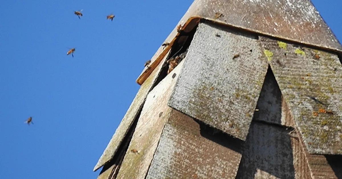 The bees inside the bell tower "are probably inside a wall structure," Gary says.