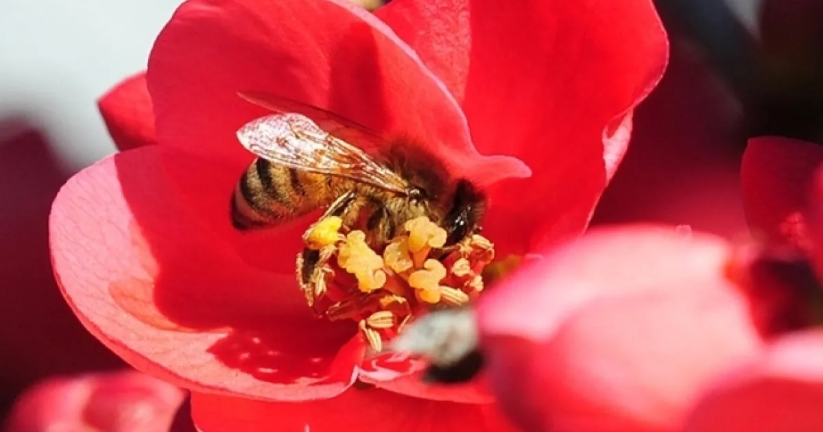 Did the honey bee ever say that to a pink flowering quince? Probably not.