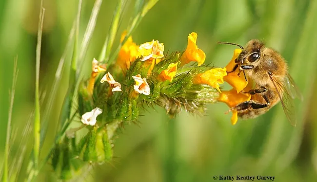 "The overall aim of our study was to identify California native plants, and more generally plant traits, suitable for coordinated habitat management of arthropod pollinators, herbivores, and natural enemies and promote integrated ecosystem services in agricultural landscapes," they wrote. "More specifically we ask (a) which native plants among our candidate set attract the highest abundances of wild bees, honeybees, herbivores, predators, and parasitic wasps, (b) if the total abundances of arthropods within these functional groups across plant species are related to the peak flowering week, floral area, or flower type of the focal plant species, and (c) if the total abundances of arthropods within these functional groups are correlated to each other across plant species." (See the results of their research.)