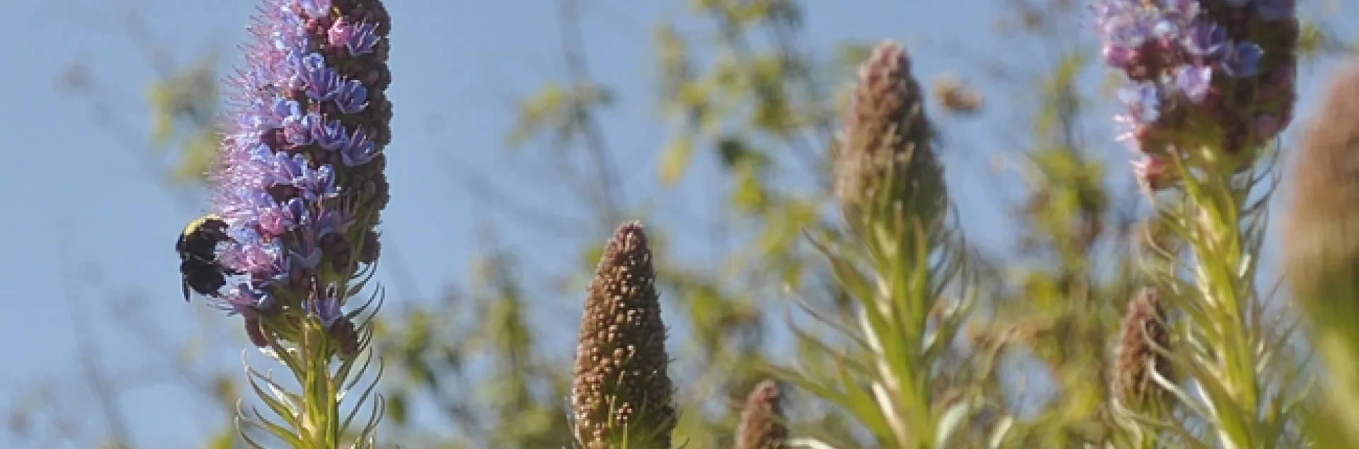 The camera lens, the strong wind and the erratic flight of the bumble bees didn't allow us to get close, but the purple spiked flowers made a delightful sight.