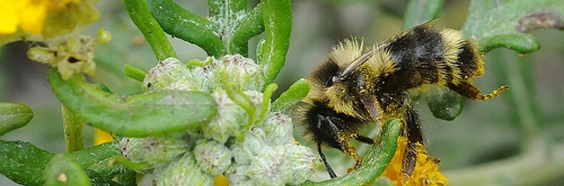 Goldfields are natives and so are bumble bees. Goldfields belong to the Asteraceae family, also known as the aster, daisy or sunflower family.