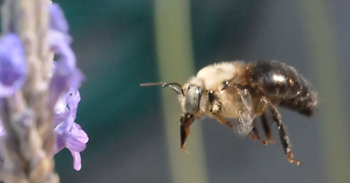 The carpenter bees (Xylocopa tabaniformis) that nectar the sage, lavender, catmint and coral bells in our bee friendly garden move fast.
