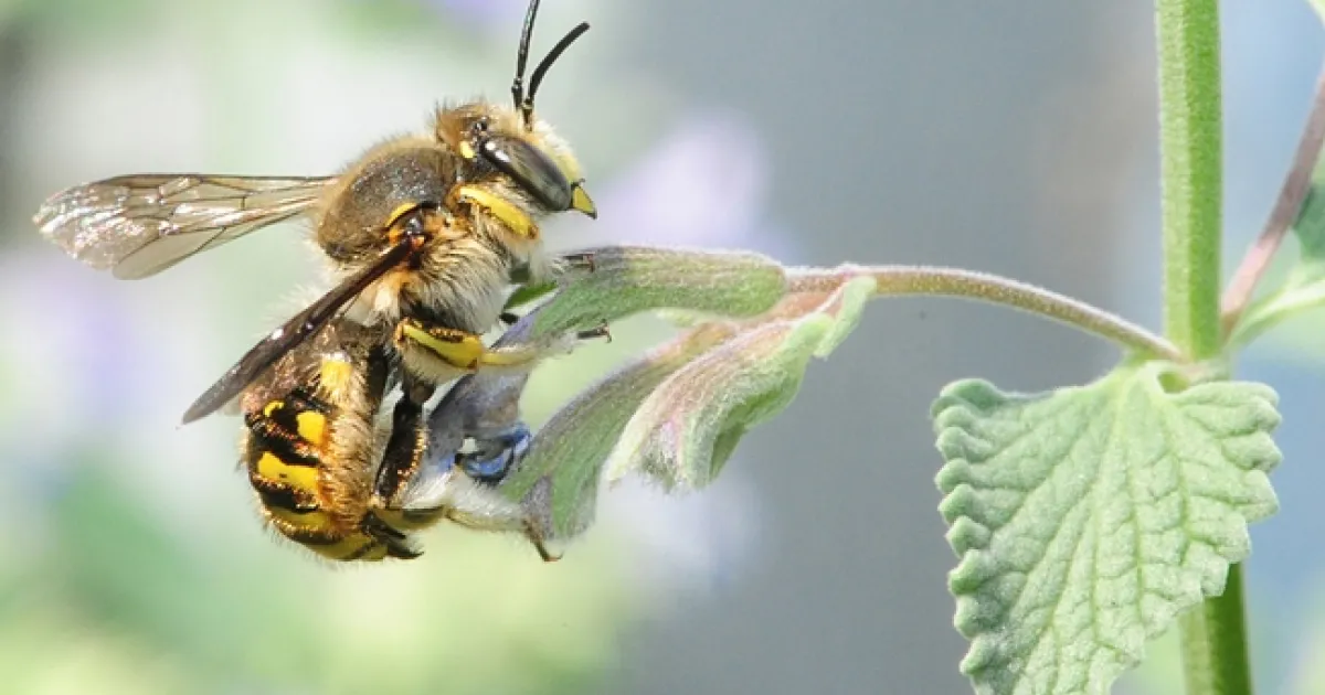 The wool carder bees (Anthidium manicatum), so named because the females collect or "card" plant fuzz for their nests, move quickly. The males, more aggressive and very territorial, move even faster.