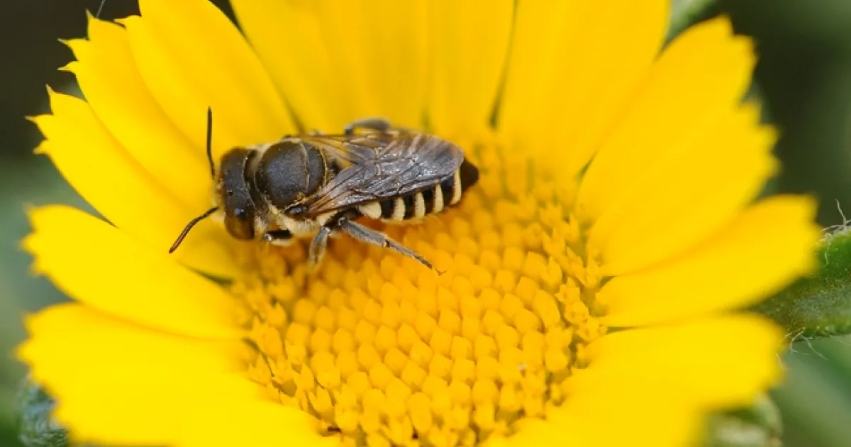 We watched a leafcutter bee (genus Megachile) foraging on a gold coin flower (Asteriscus maritimus 'Gold Coin') yesterday when suddenly danger lurked.