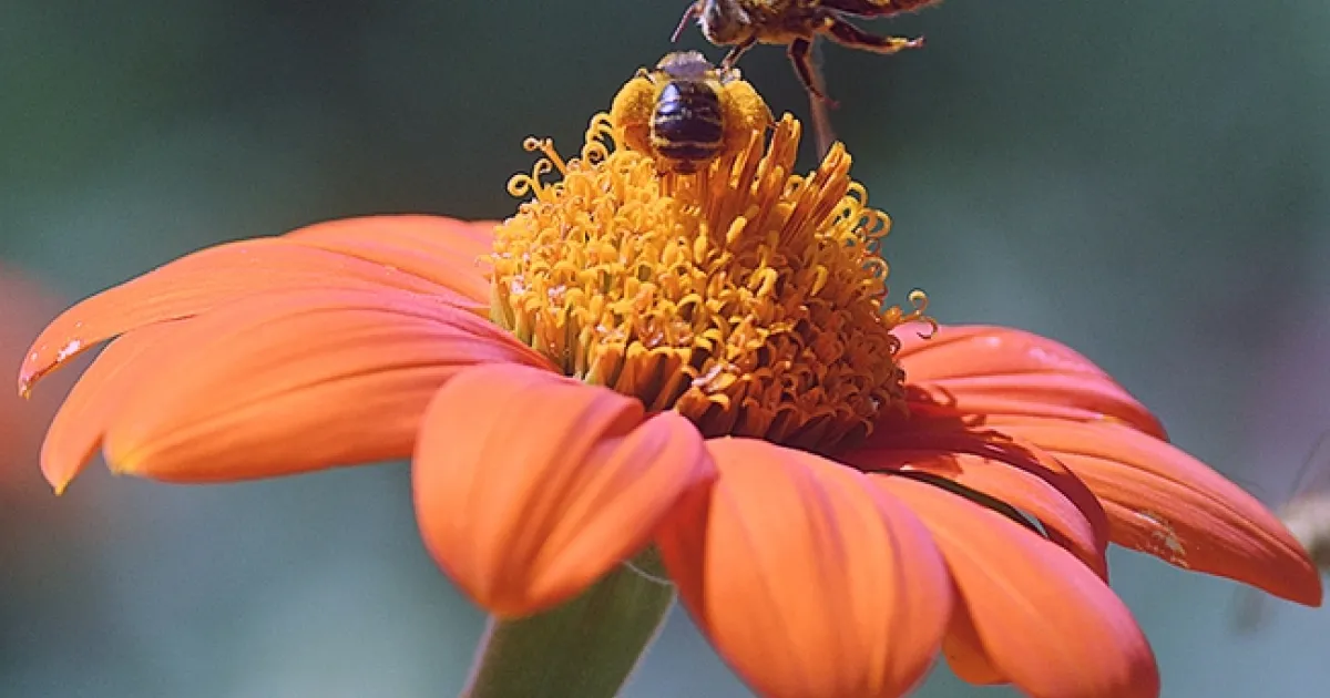 Such is the case in our family's pollinator garden as the activity on, around, above and below the Mexican sunflowers (Tithonia rotundifola) becomes fast and furious.