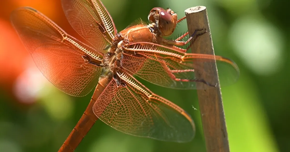 Flameskimmers, Libellula saturata, are a joy to watch as they circle, curve and dip to snatch their prey in flight. When they perch, they sometimes look like a biplane.