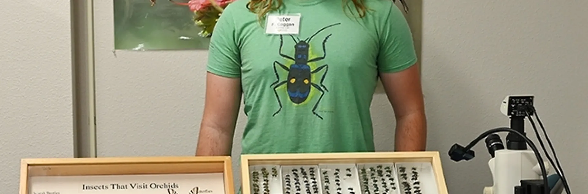 The younger Coggan, a member of the UC Davis Population Biology Graduate Group, was born and raised in Boulder, Colo., where he developed a love for biodiversity in the surrounding mountains. He is broadly interested in how sensory processing shapes memory formation and other cognitive traits. He is currently investigating "how hover flies decide which flowers to visit based on innate color preference and learned odors." He began conducting research in high school and has participated in projects from cancer diagnostics to waste water management. He received a bachelor of science in biology from Case Western Reserve University, Cleveland. As an undergraduate, he worked with Dr. Mark Willis and studied how moths perceive smell while moving through a complex environment. Coggan anticipates a career in academia and "to continue to raise awareness about invertebrates."