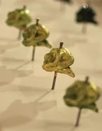 One of the works, by Joanna Kidd of Davis, is titled "Specimens." It is comprised of three wall cases and a floor case. Specimens are small human sculptures (see top photo), all pinned and displayed as they would be in an insect collection.