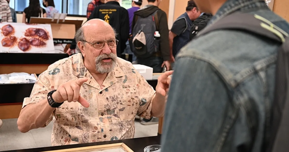 Crowds thronged the "Dr. Death" booth of forensic entomologist Robert "Bob" Kimsey of the UC Davis Department of Entomology and Nematology faculty, as he discussed his work and fielded questions.