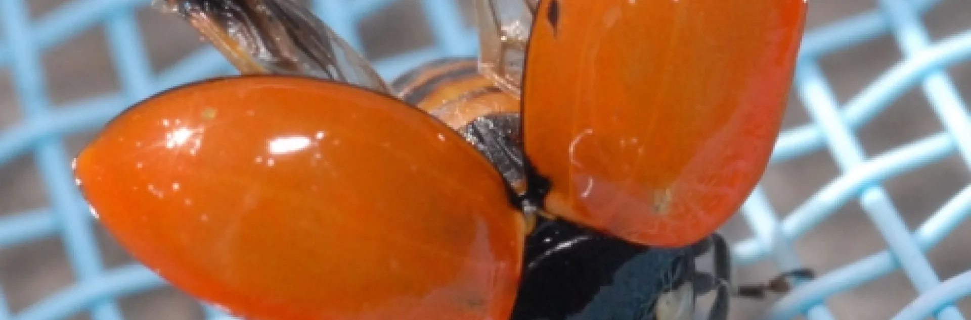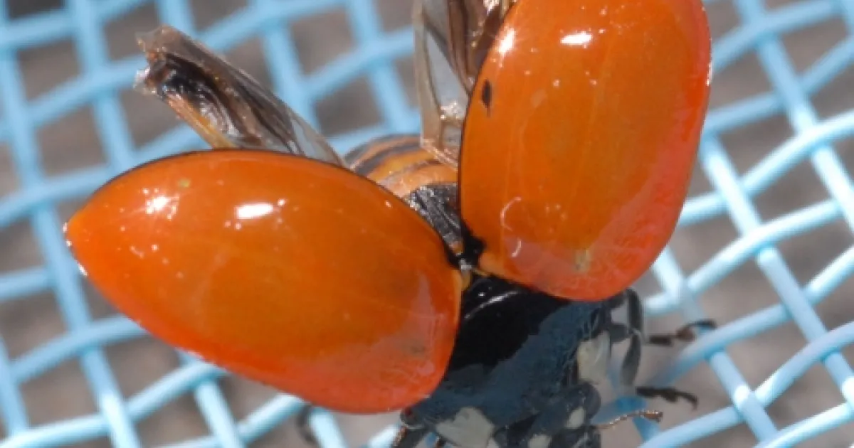 She didn't look like the familiar lady beetle, reddish orange with black spots. One spot was all she had.