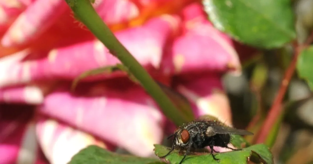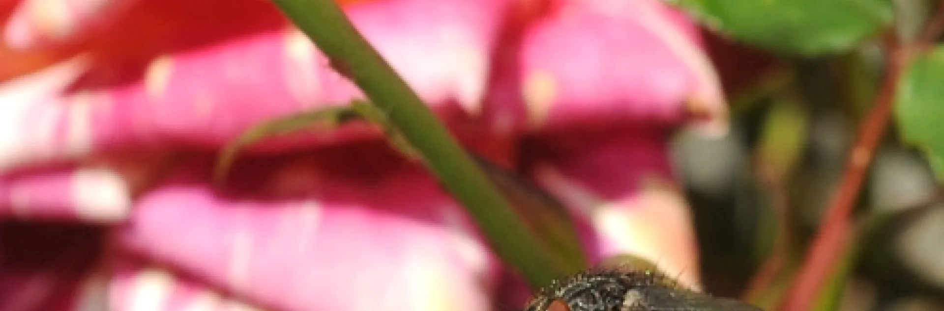 FLY ON A ROSE--We're accustomed to seeing insects on roses, but not flies. (Photo by Kathy Keatley Garvey)
